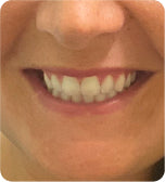 Julia’s 6-month treatment corrected the upper arch misalignment, bringing her front teeth into proper position and giving her a more even, natural-looking smile.